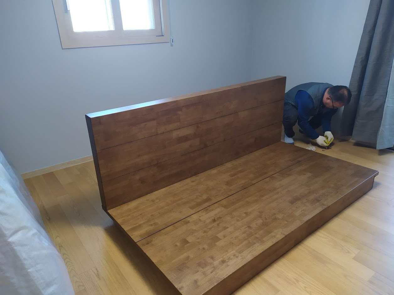 제가 구매한 제품은 유로홈가구 저상형 원목 프레임입니다. 유명한 회사는 아니지만 원목으로 이스턴킹 저상 침대를 취급하는 곳입니다. 요청사항 반영도 잘 해주십니다.(컬러는 옵션 선택, 헤드디자인 및 세부 크기 조정 가능) 제가 구매한 모델은 지방 배송비까지 포함해서 총 74만원 들었습니다. 설치까지 해주십니다.